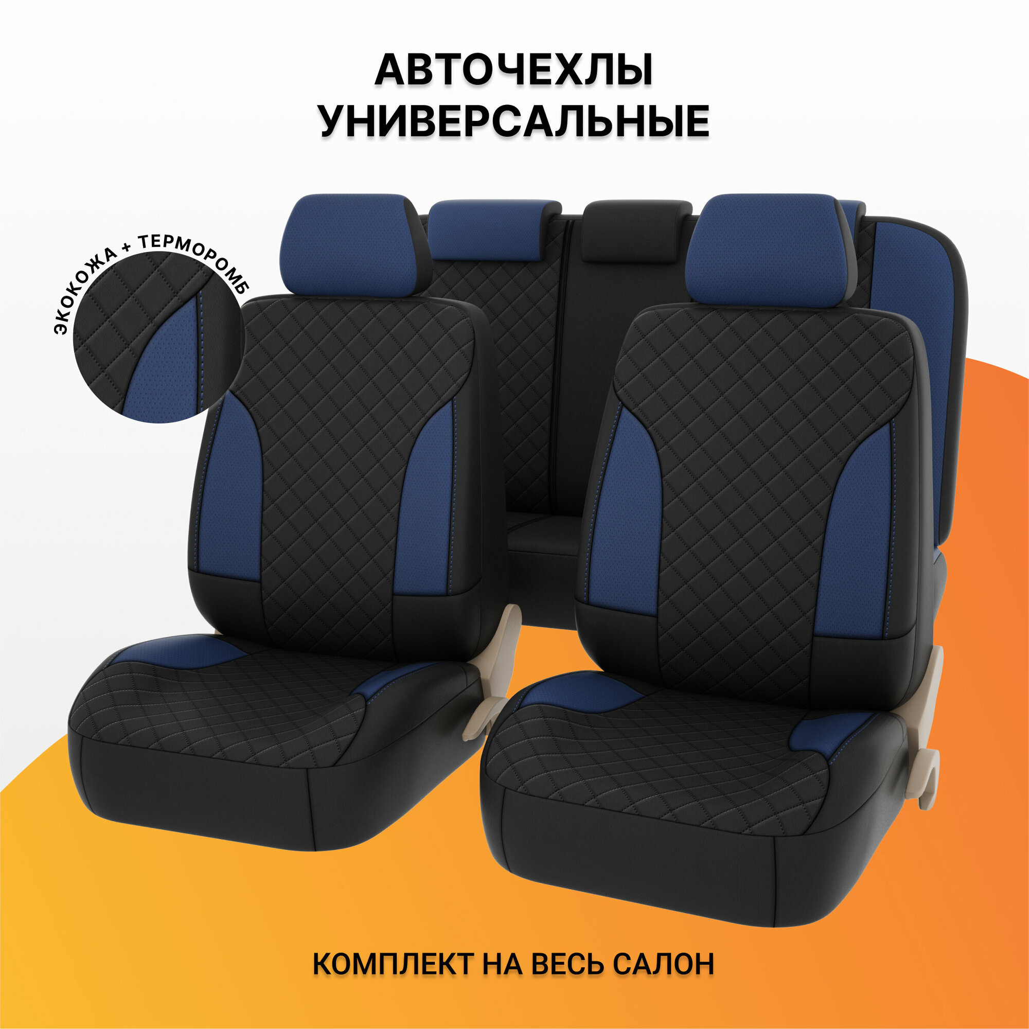 Чехлы универсальные в машину PSV King Next (Черный-Синий), терморомб + экокожа информация: