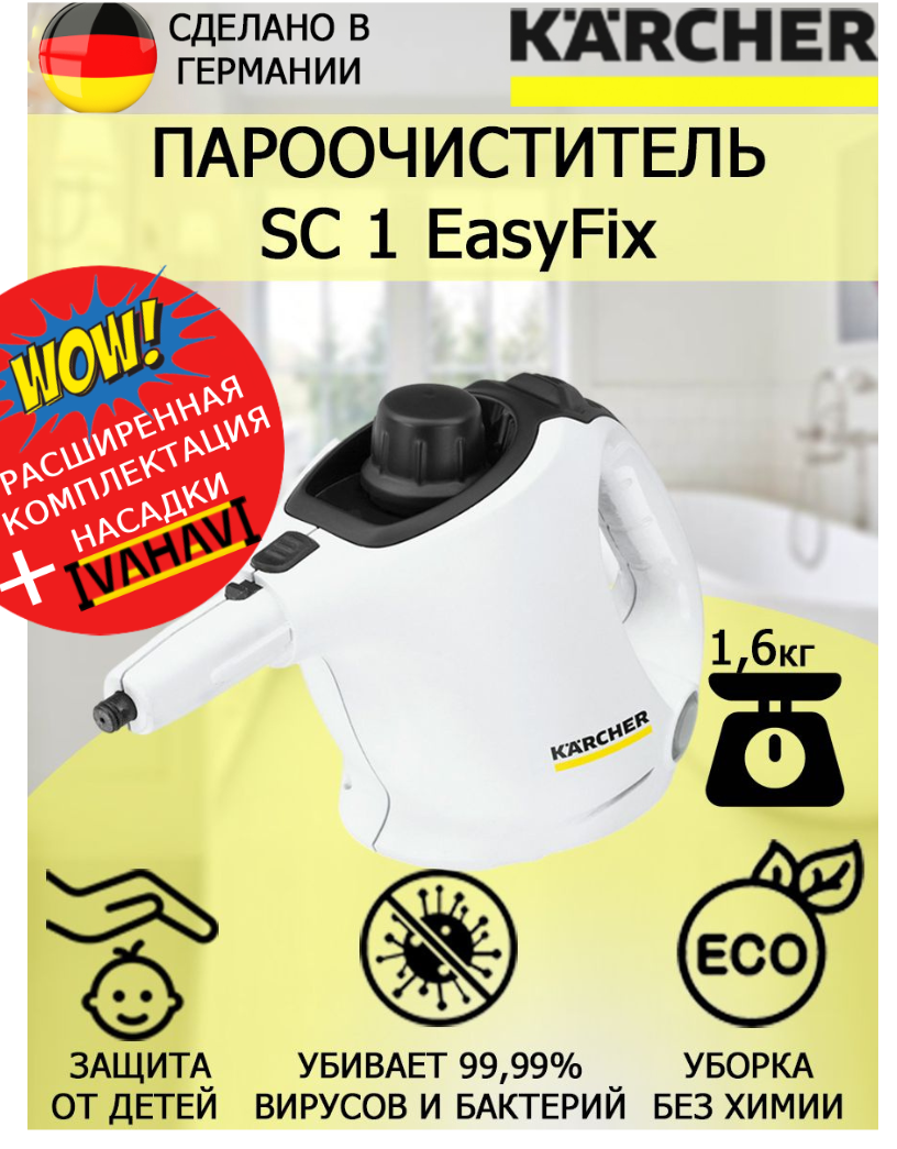 0 отзывов, средняя оценка 0. Чтобы купить «Пароочиститель Karcher SC 1 EasyFix белый+латексные перчатки» по лучшей цене мы сканируем авито, алиэкспресс, маркет, озон, савеловский, плеер, горбушку, беру, официальные сайты и находим минимальную. Администрация не несет ответсвенность актуальность цен на Пароочиститель Karcher SC 1 EasyFix белый+латексные перчатки, более подробно узнавайте на сайте магазина.