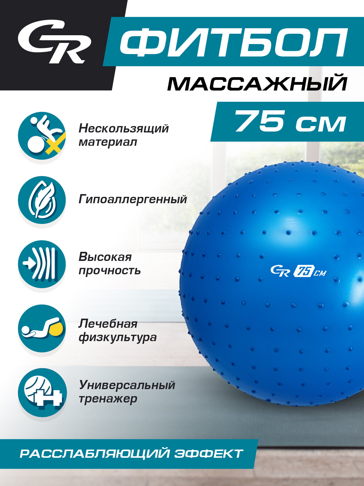 Мяч гимнастический массажный CR, синий, 75 см, JB0206586 информация:
