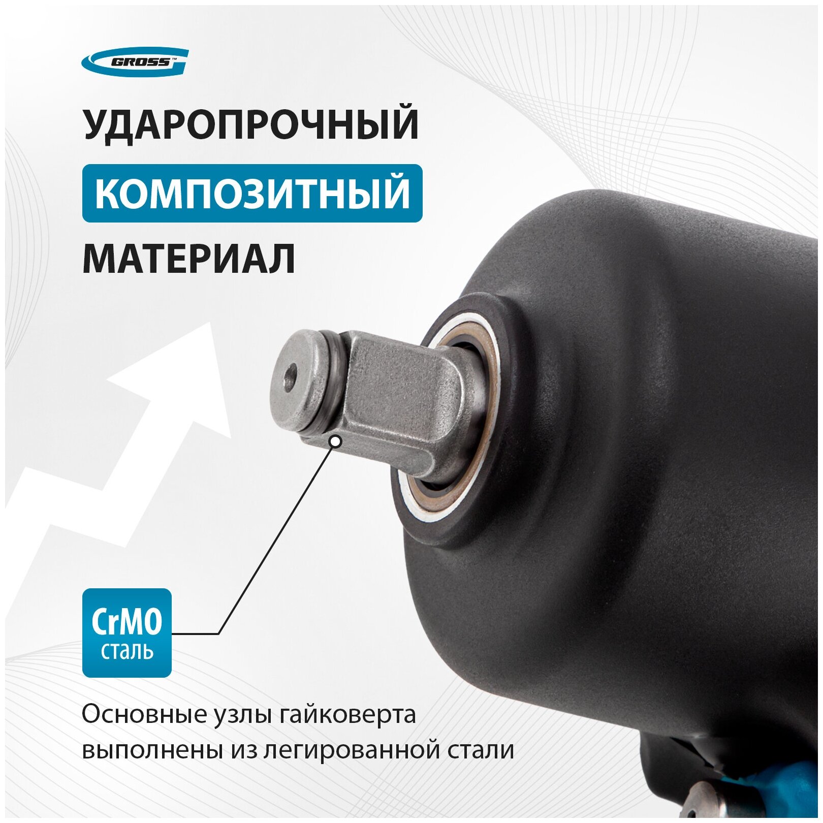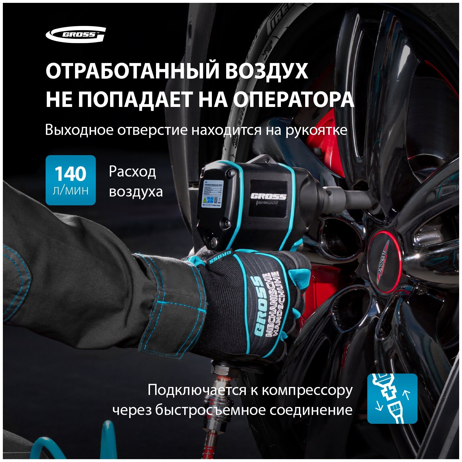 Гайковерт пневматический ударный GROSS 57442, G1285, 1/2", TwinHammer, 1220Нм, 6500 об/мин, композитный