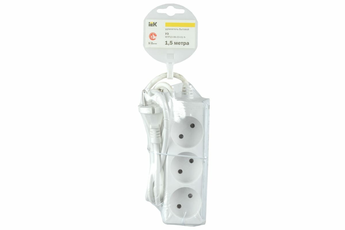 Удлинитель Iek У3 3 места 2P/1,5 метра 2х0.75мм2 10А/250В, WYP10-06-03-01-N