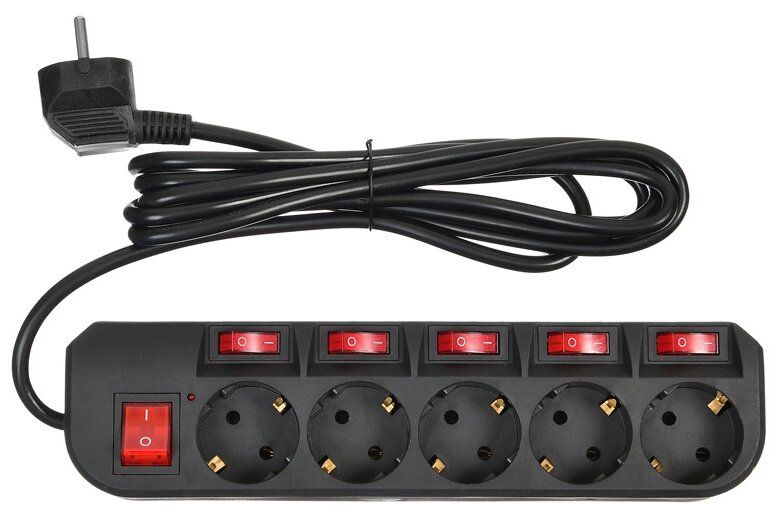 Buro 500SH-3-SW-B 3м, 5 розеток, black