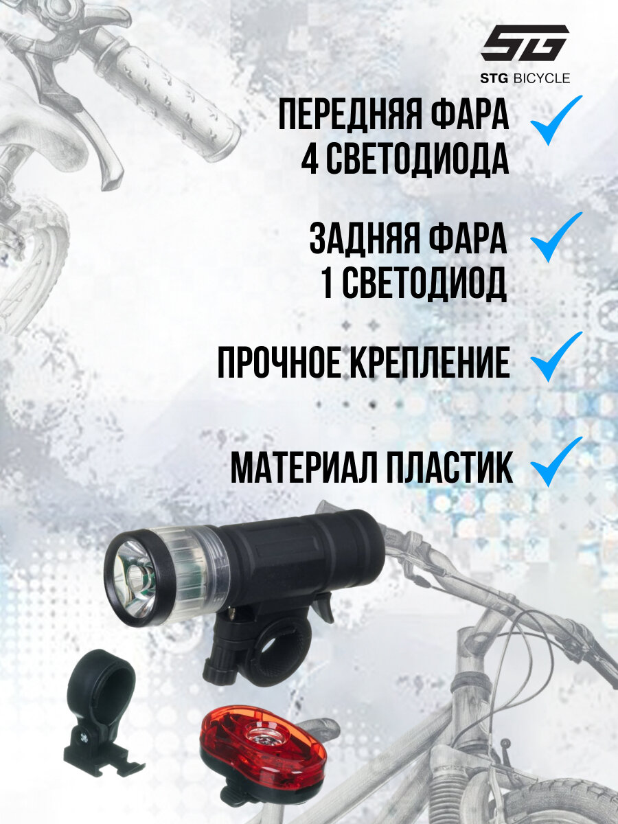 Фонарь велосипедный STG комплект задний и передний, черный/красный, пластик