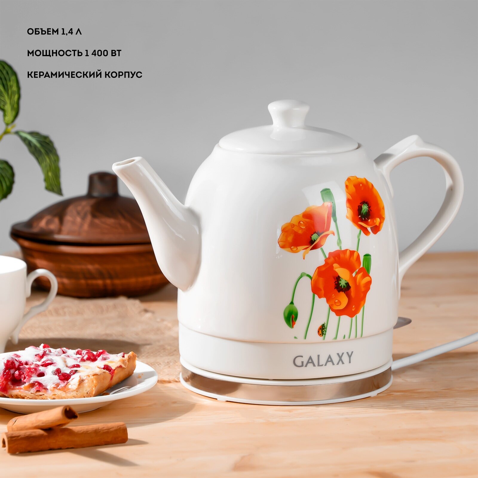 Чайник электрический Galaxy GL 0506, керамика, 1.4 л, 1400 Вт, белый информация: