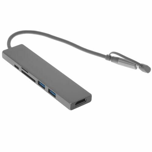 Док-станция Qumo Dock 7 (HB-0008), Type-C, PD, HDMI, 4k 30Hz, 1080p 60 Hz, GE1000 MBS, 4 USB 3.0, 20 cm, SD, Micro SD, металлический корпус, темно-сер