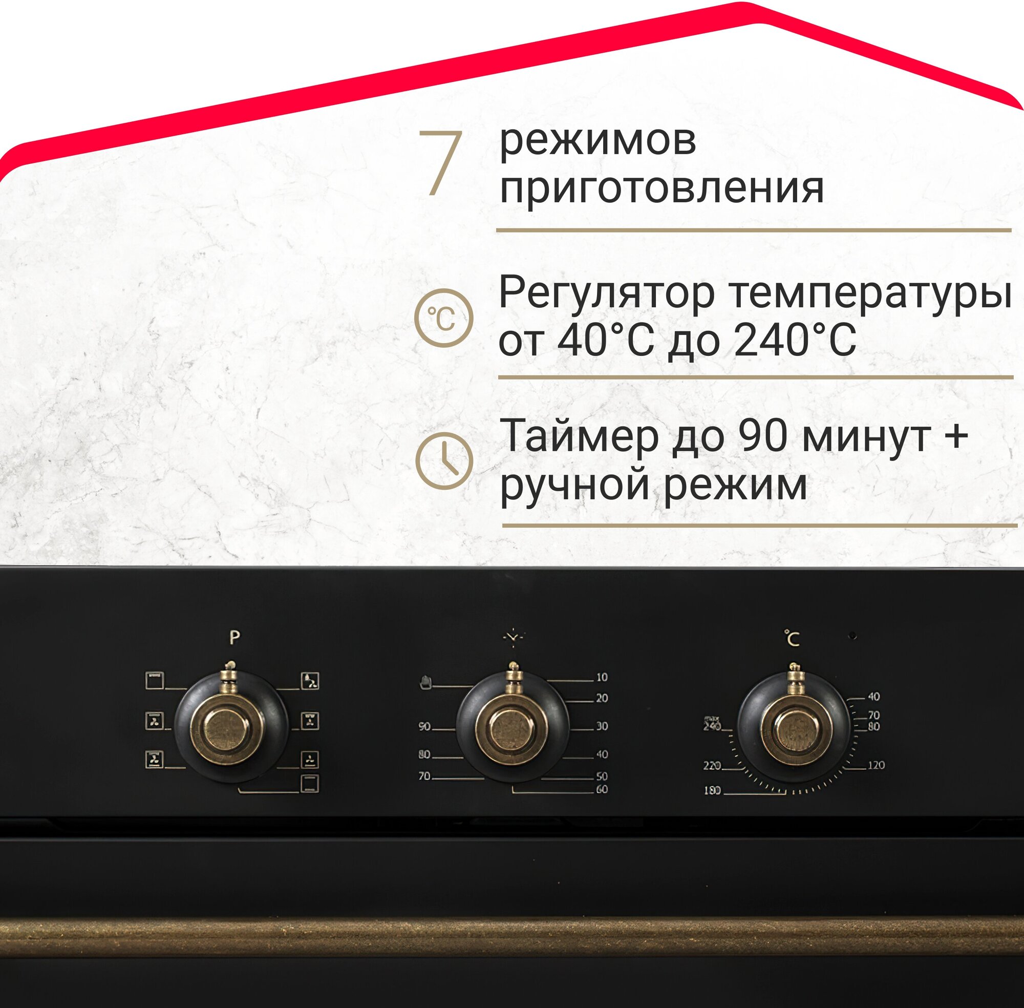 Духовой шкаф встраиваемый LEX EDM 077 C IV, 60 см, с конвекцией, механические ручки, объем 60 л, аналоговый таймер, телескопические направляющие.
