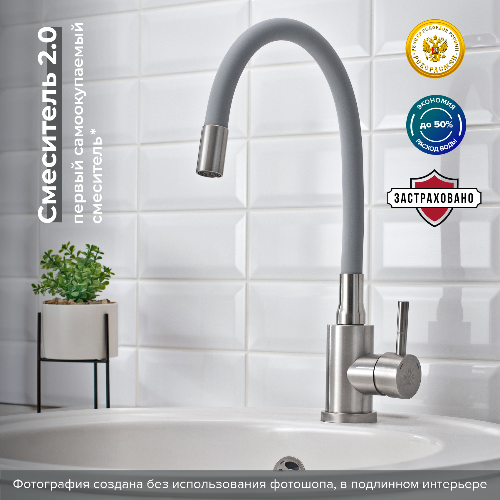 Отзывы на Смеситель для кухни, РМС, гибк излив, с картриджем, сер, SUS124GY-016F