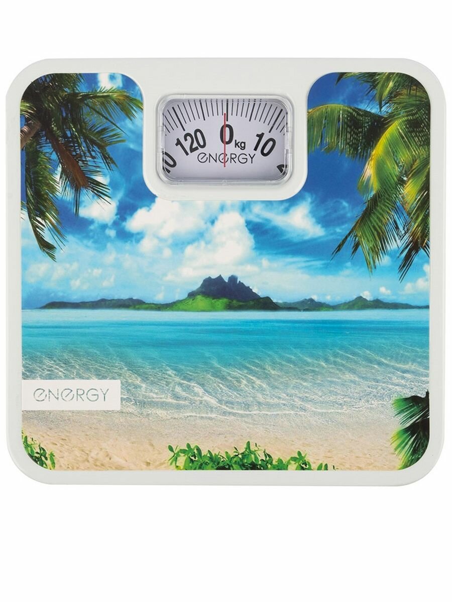 Весы напольные ENERGY ENМ-409F, механические, до 120 кг, картинка "пляж"