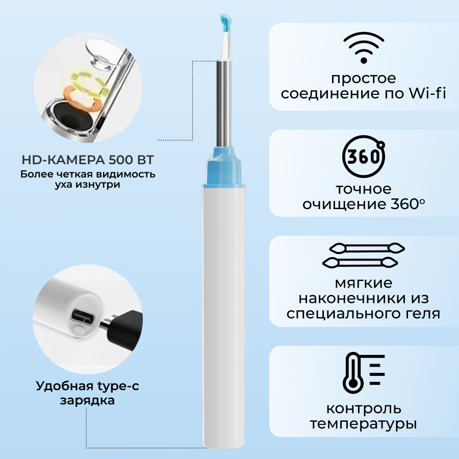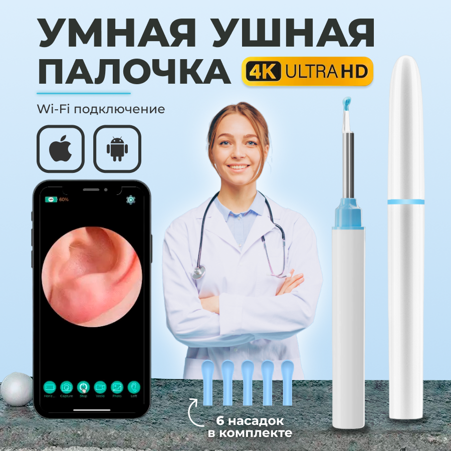 Отзывы на Умная ушная палочка V105 Белая/Косметические аппараты для ушей/Ушная палочка /Отоскоп/Инструмент для чистки ушей
