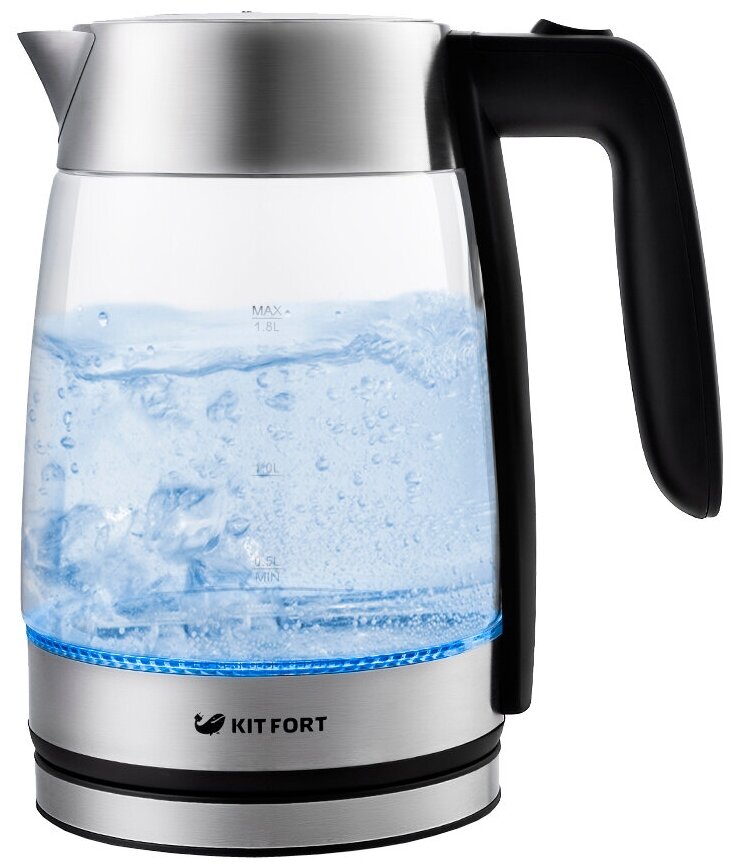Чайник KITFORT КТ-641, 1,8 л, 2200 Вт, закрытый нагревательный элемент, стекло, серебристый