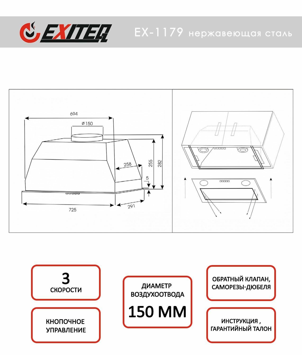 Вытяжка кухонная EXITEQ EX-1179 информация: