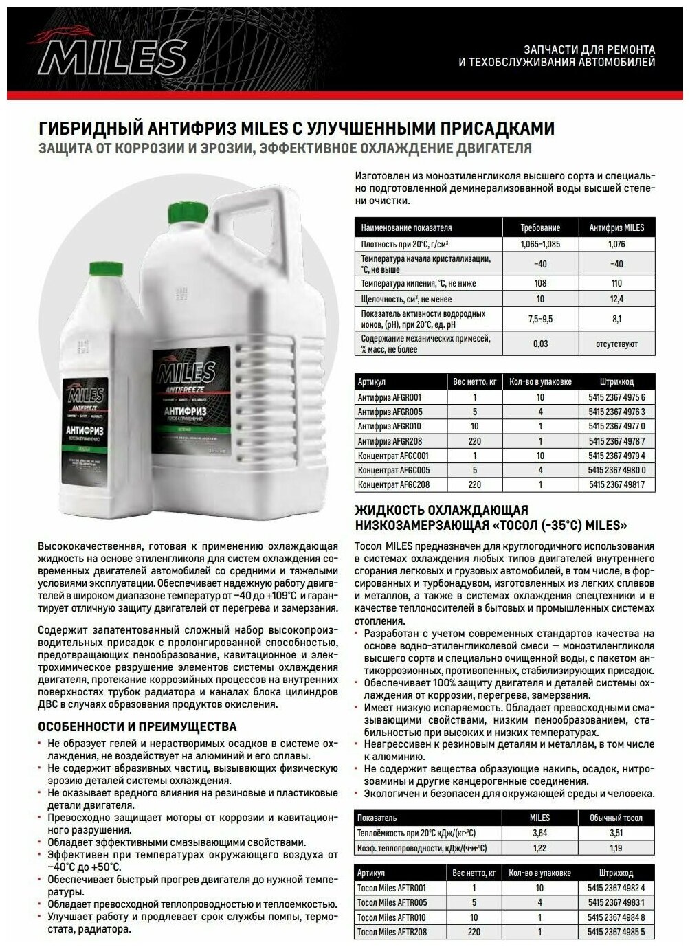 Антифриз G11 Miles Концентрат 5Кг (Зеленый) Miles арт. AFGC005 информация: