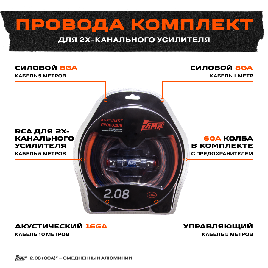 Комплект для установки автомобильного усилителя AMP MASS 2.08