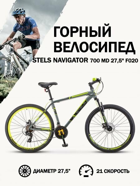 Велосипед STELS NAVIGATOR-700 MD 27,5, колесо 27,5'', рост 21'', сезон 2021-2022, серый/желтый