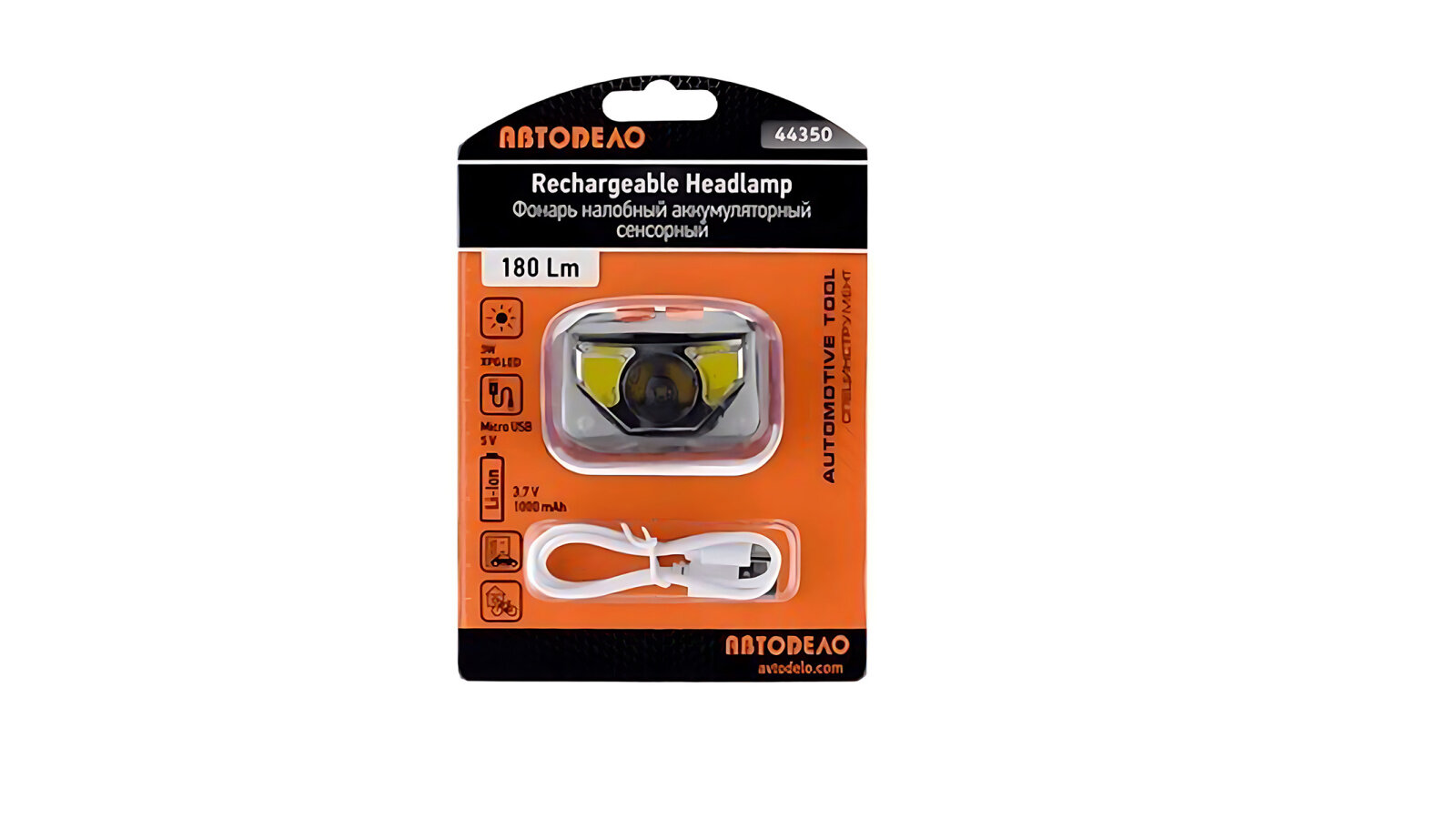 Фонарь налобный АвтоDело аккумуляторный сенсорный 3-и источника 180Lm Li-ion 1000mAh 44350