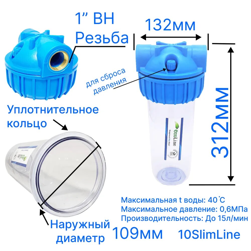 Фильтр магистральный SLIM LINE 10 дюймов 1" в комплекте ключ и кронштейн, АБФ-10-1 1 160 ₽
