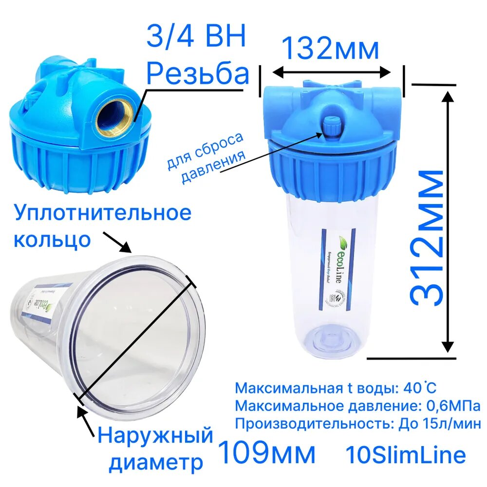 Фильтр магистральный EcoLine 3/4 дюйма для холодной воды, прозрачный, с картриджем информация: