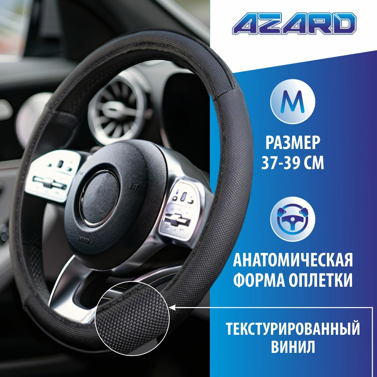 Оплетка руля M 37-38 см винил Объемный черная AZARD OPLA0113 информация: