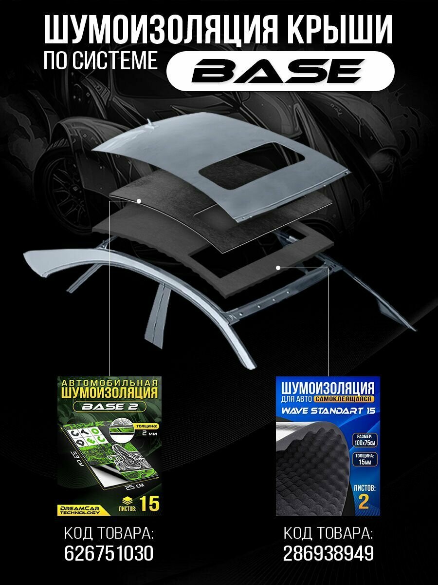 Виброизоляция облегченная DreamCar Base 3мм 33x25см - 15 листов, шумоизоляция самоклеящаяся 1 149 ₽