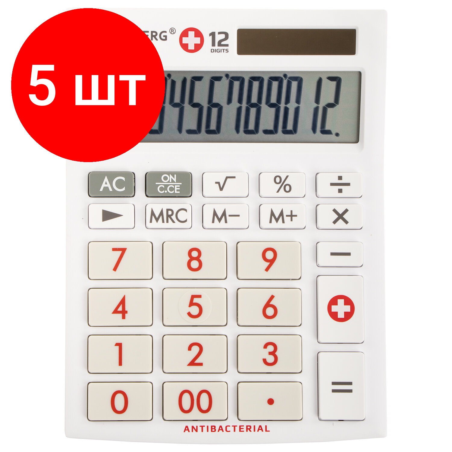 Комплект 5 шт, Калькулятор настольный BRAUBERG ULTRA-12-WAB (192x143 мм), 12 разрядов, двойное питание, антибактериальное покрытие, белый, 250506 информация: