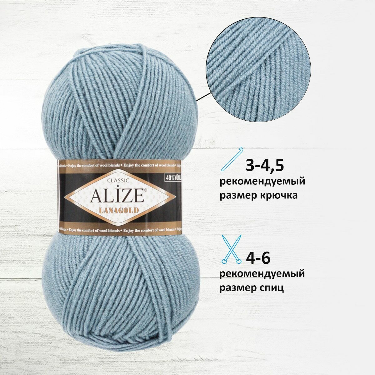 Пряжа "Alize LanaGold"-серо-голубой цвет, 51% акрил,49% шерсть,100 г/240 м,5 шт. информация: