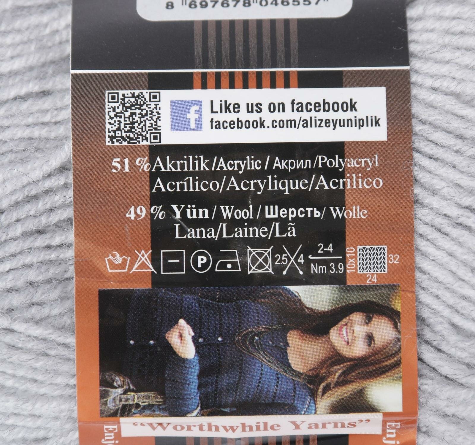 Пряжа Alize Lanagold Fine (Ализе Ланаголд Файн) - 5 мотков, 684 пепельный меланж, 49% шерсть, 51% акрил 390м/100г