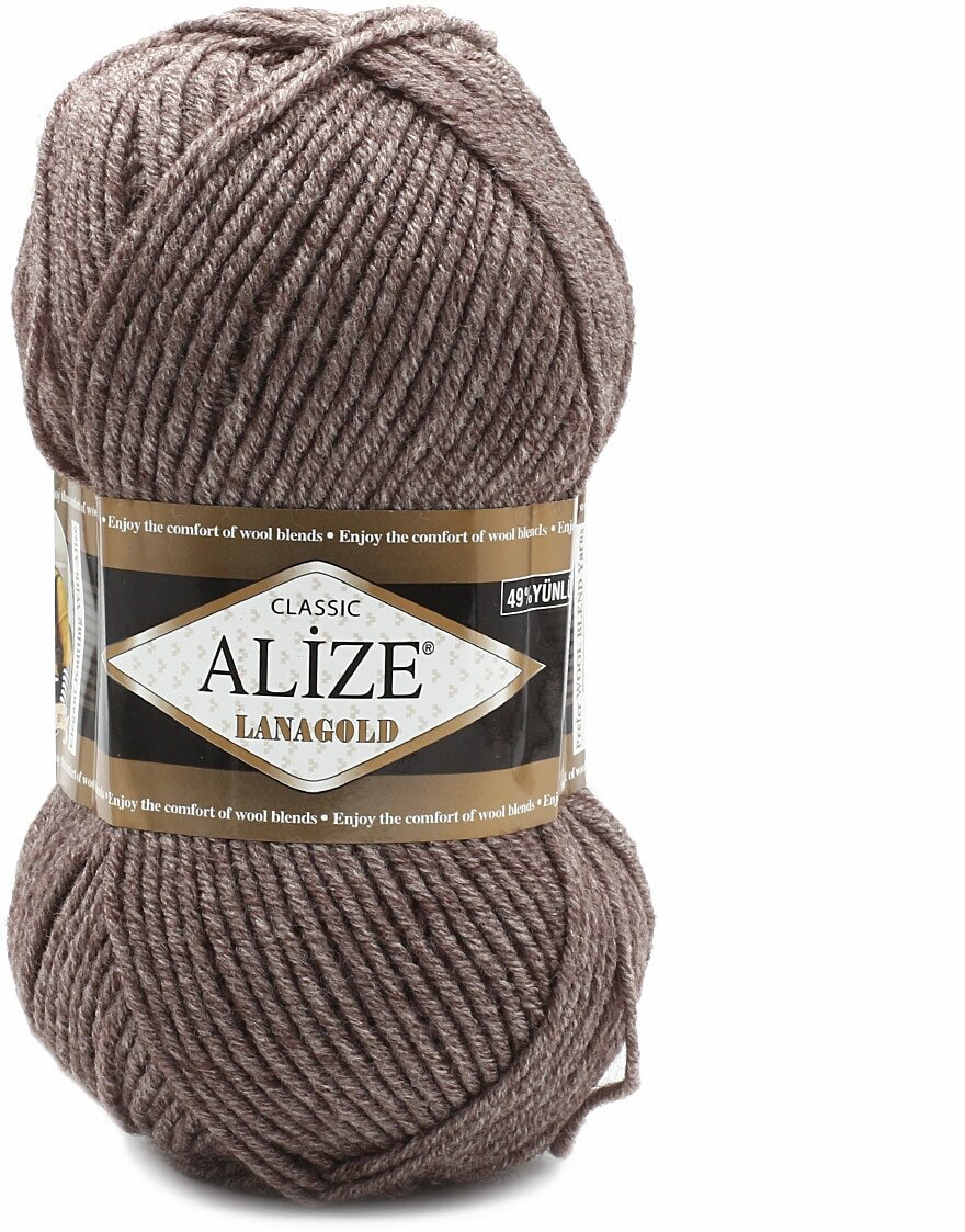 10 цен на Пряжа ALIZE "Lanagold", 51% акрил, 49% шерсть, 240 м*100 г, 240 светло-коричневый меланж, 1 шт