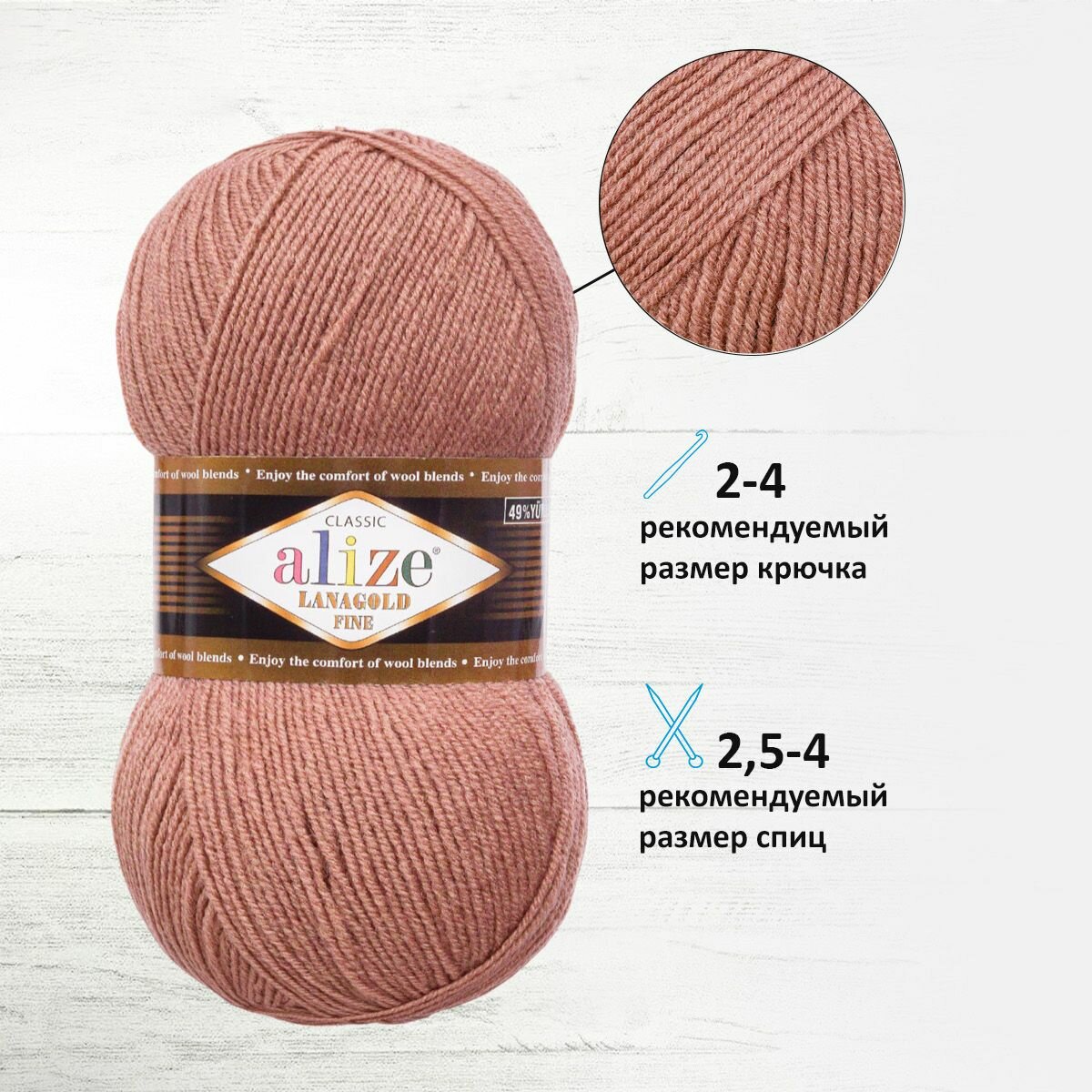 Отзывы на Пряжа Alize Lanagold Fine увядшая роза (173), 51%акрил/49%шерсть, 390м, 100г, 5шт
