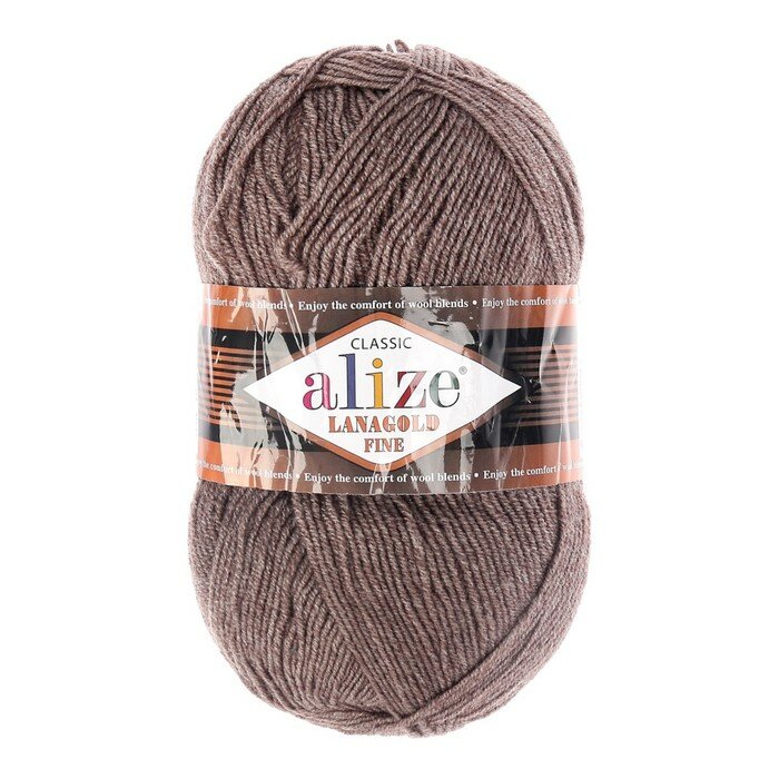 Пряжа Alize Lanagold Fine (Ализе Ланаголд Файн) - 1 моток, 26 коричневый, 49% шерсть, 51% акрил 390м/100г