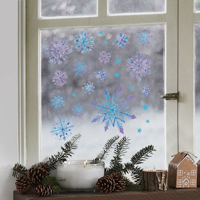 Отзывы на Дарите Счастье Наклейки на стекло «Снежный день», многоразовые, 20 × 34 см
