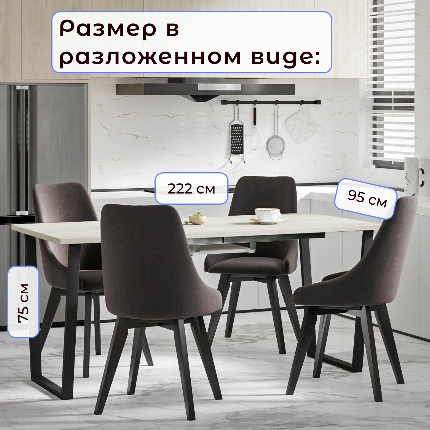 Стол кухонный обеденный атлант 02 EGGER: Камень черный раздвижной в стиле лофт 25 820 ₽