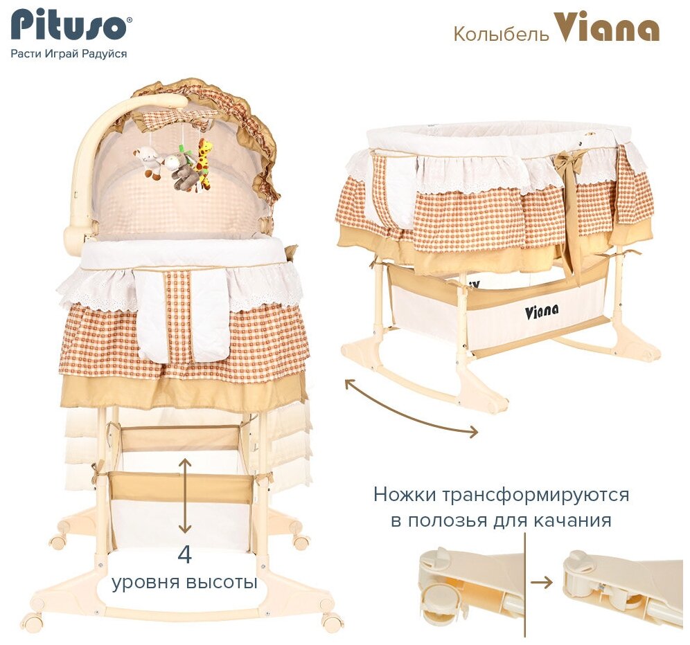 10 цен на Колыбель 3 в 1 Pituso Viana, Cage Beige/бежевый