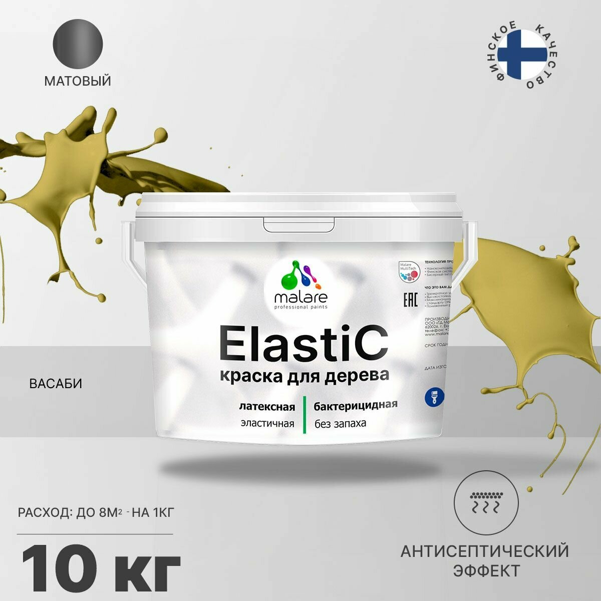 Краска Elastic для деревянных поверхностей, для внутренних и наружных работ,с антисептическим эффектом, матовая, васаби, 10 кг. информация: