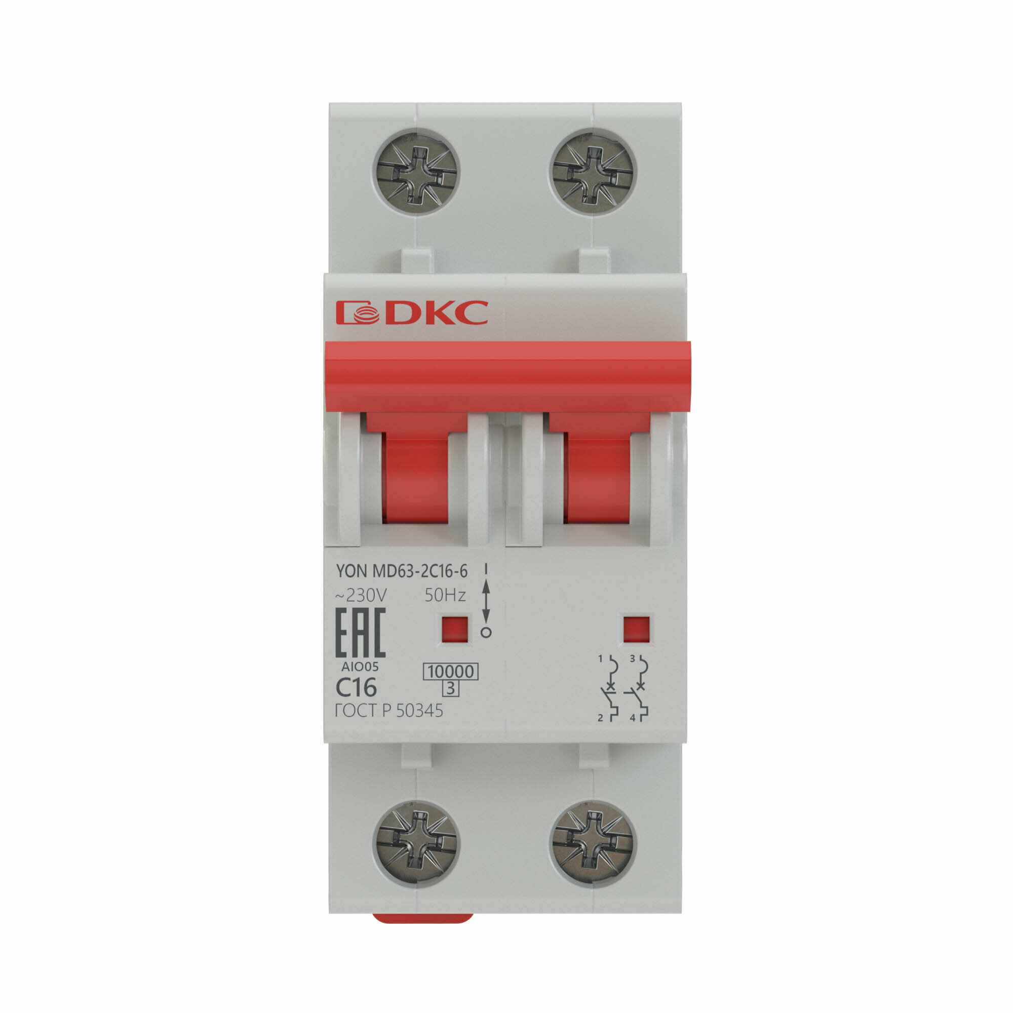 Выключатель автоматический модульный YON 10А 2П двухполюсный C 6кА MD63-2C10-6 DKC