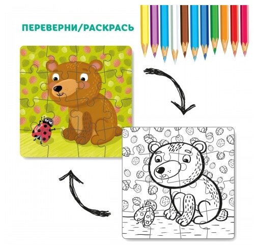 Пазл-раскраска 2-в-1 "Медвежонок" 16 элементов информация: