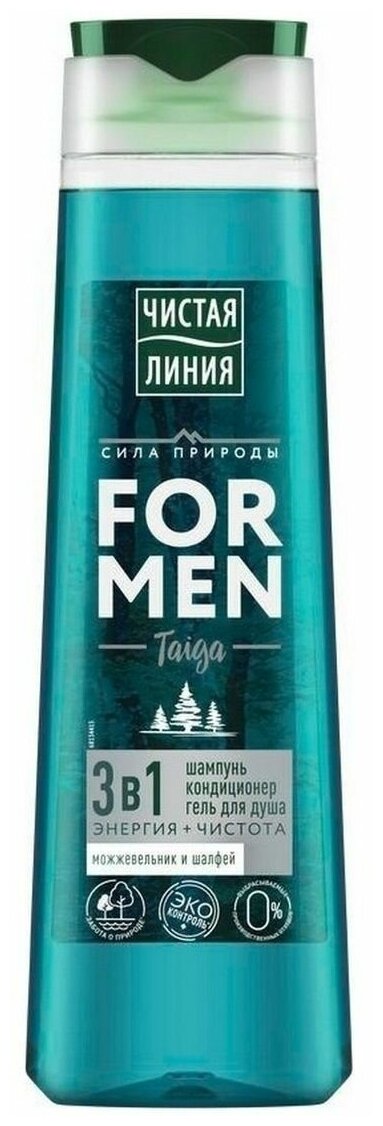 Чистая Линия Шампунь 3 в 1, For Men, Taiga, Энергия и чистота, 400 мл /