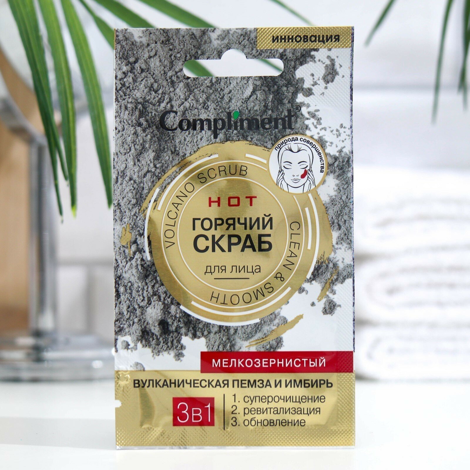 Скраб для лица 3 в 1 Compliment "Вулканическая пемза и имбирь", горячий, саше, 7 мл./В упаковке шт: 1