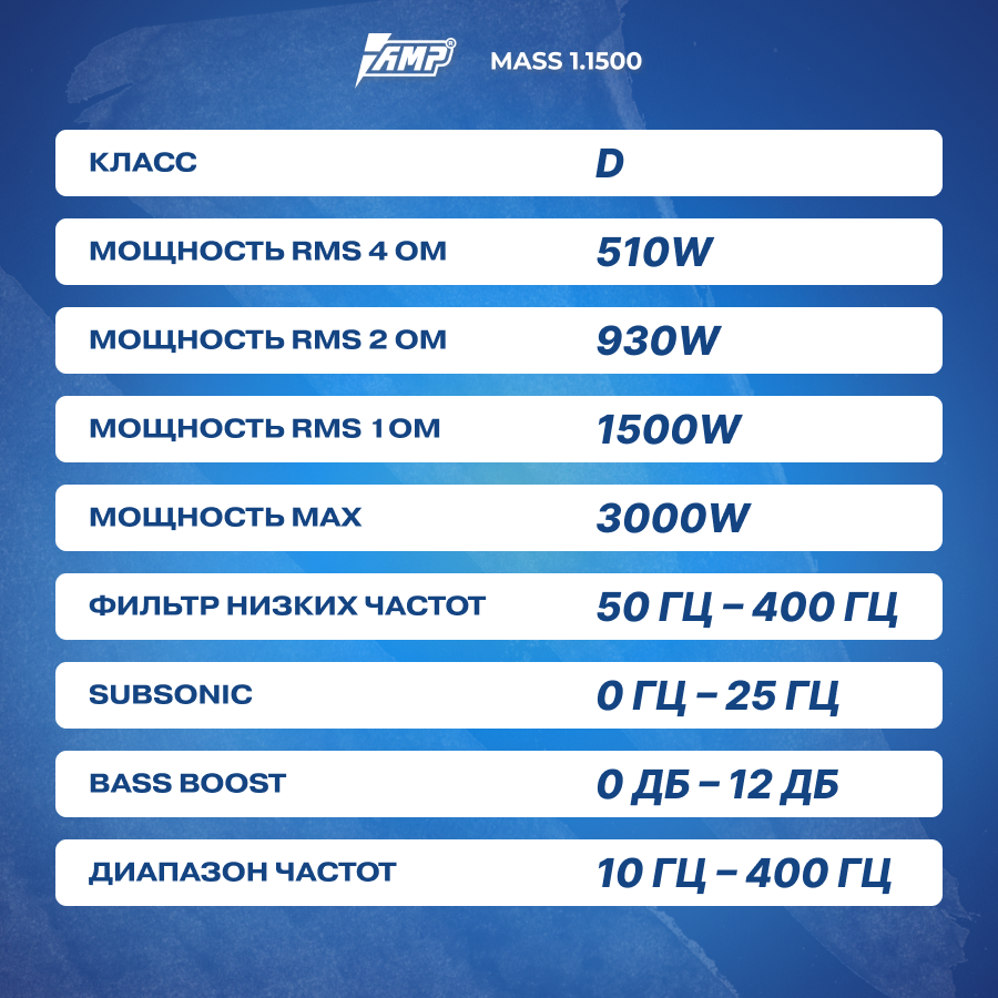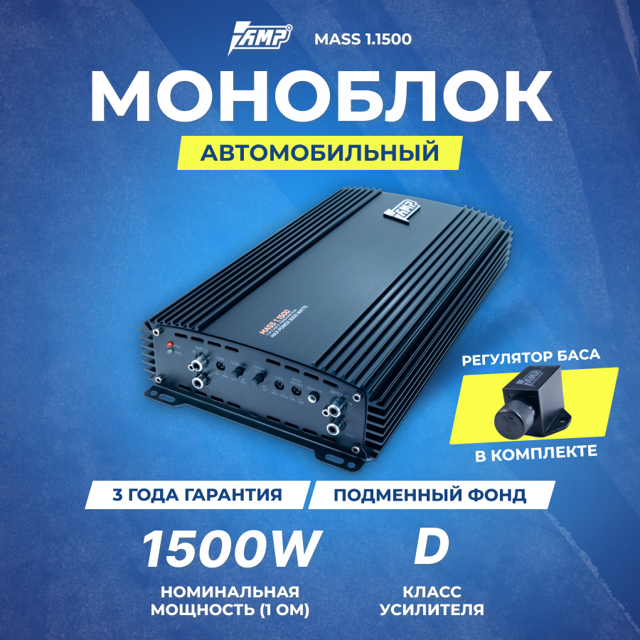 10 цен на Автомобильный Усилитель (моноблок) AMP MASS 1.1500 Для сабвуфера.