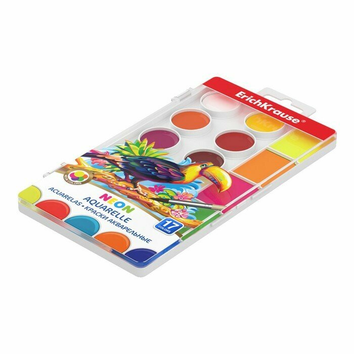 10 цен на ErichKrause Краски акварельные ArtBerry Neon с УФ защитой яркости 17 цветов с увеличенными кюветами