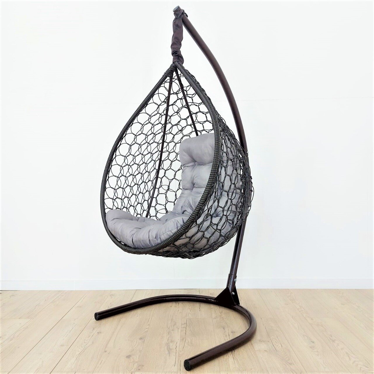 10 цен на Подвесное кресло кокон STULER Plaint Ажур Венге 100х63х175 для дачи и сада садовое кресло с круглой серой подушкой
