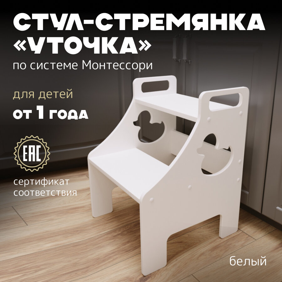 Детский стул стремянка белая, ступенька "Уточка" PAPPADO информация: