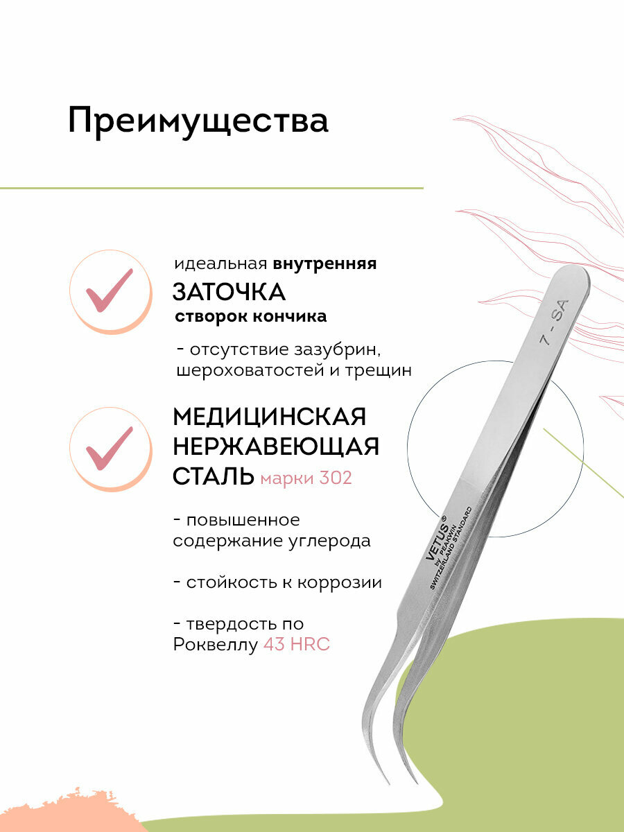 VETUS Пинцет для наращивания ресниц 7-SA изогнутый, 120 мм информация: