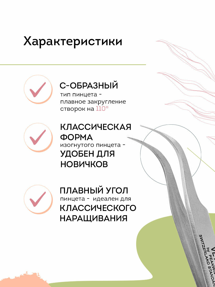 10 цен на VETUS Пинцет для наращивания ресниц 7-SA изогнутый, 120 мм