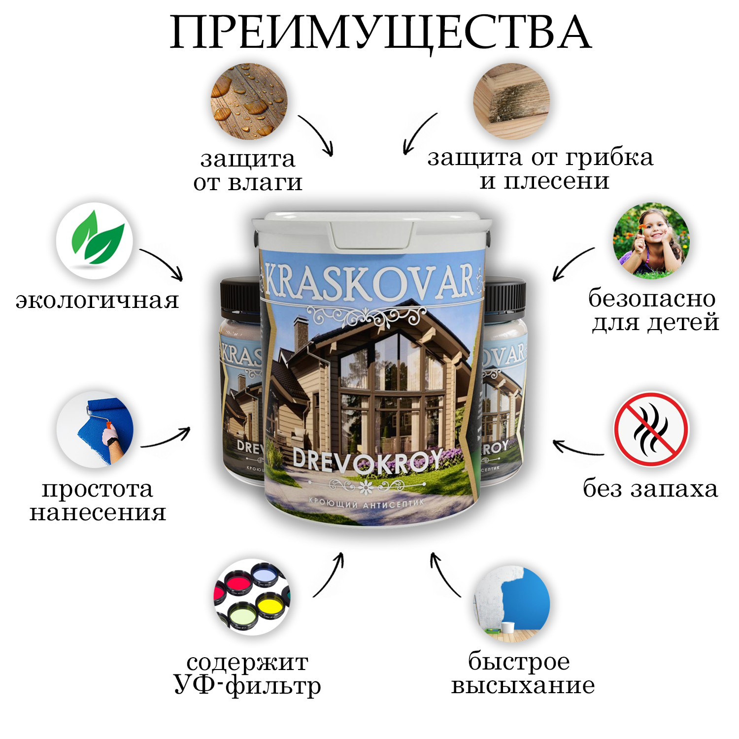 Антисептик кроющий Kraskovar Drevokroy RAL 7001 9л информация: