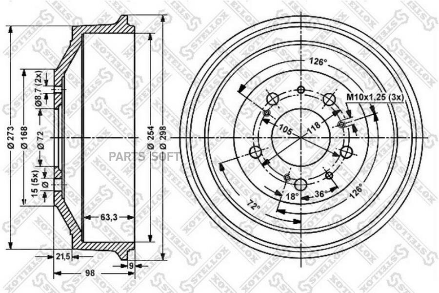 Тормозной барабан, STELLOX 6026-9906-SX (1 шт.)