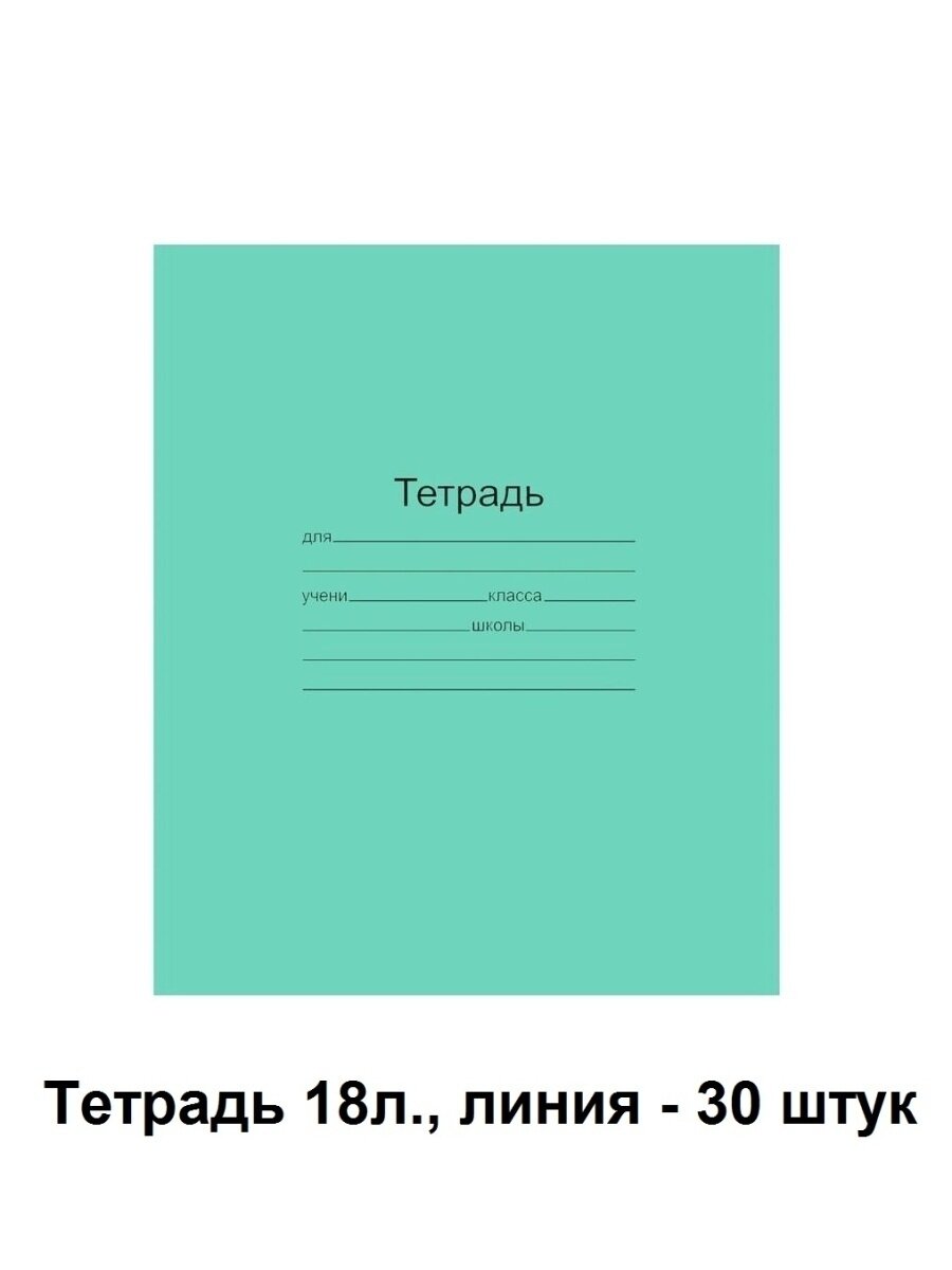 Тетрадь школьная зеленая, А5, 18 листов, в линейку, 10 штук