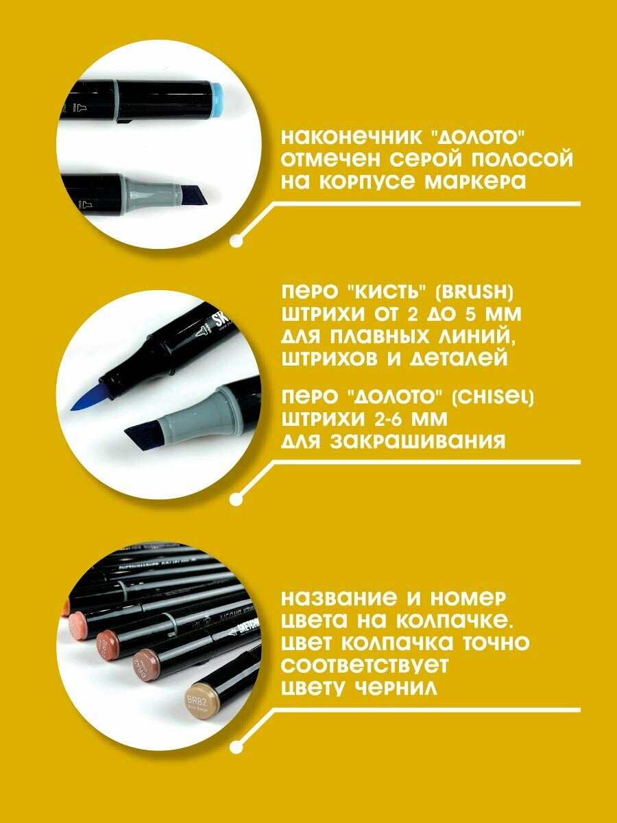 Двусторонний заправляемый маркер SKETCHMARKER Brush Pro на спиртовой основе для скетчинга, цвет: Y32 Кибер