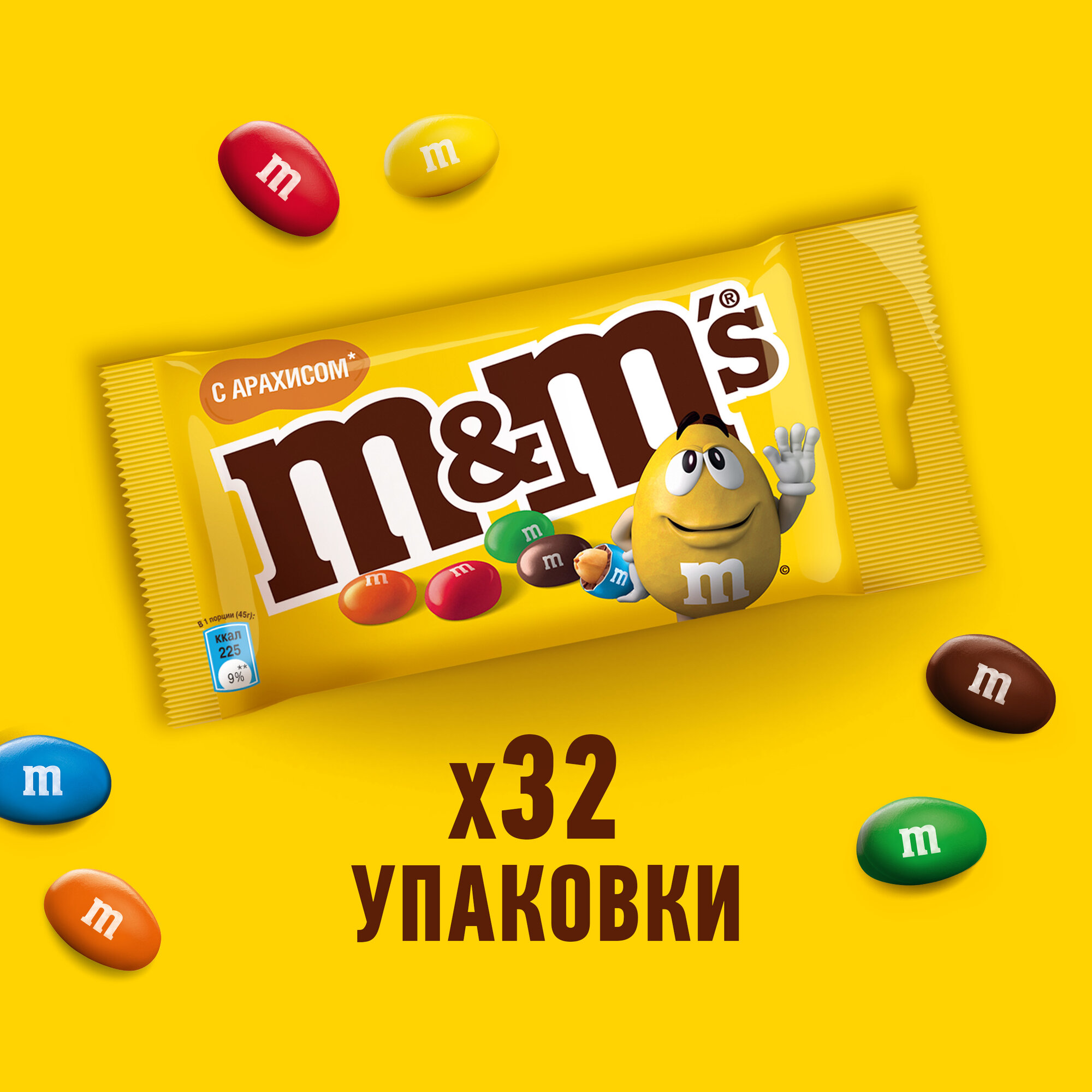 10 цен на M&M's драже с арахисом и молочным шоколадом, 45 г, 32 уп. (желтый)