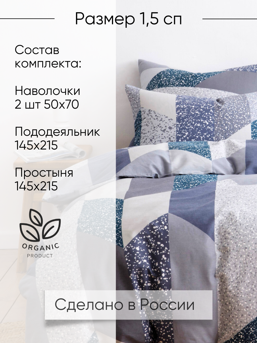 Постельное белье Сказка Сатин "Lester" 1,5-сп наволочка 50х70 1шт Простынь на резинке 90х200 см Пододеяльник 145х215 см