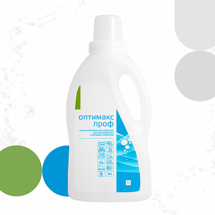 Универсальное концентрированное дезинфицирующее средство Оптимакс Проф с моющим эффектом (1,0 л, Мерный колпачок)